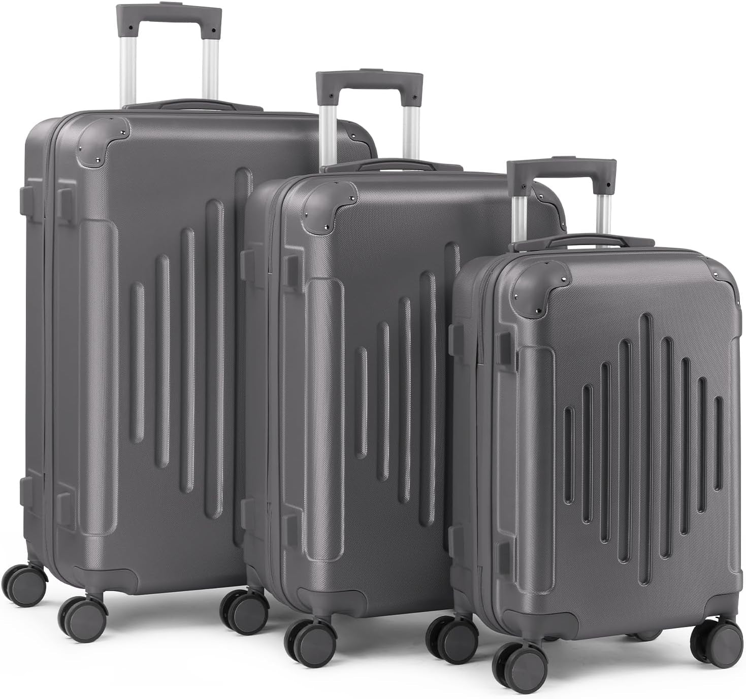 - Crafted from sturdy ABS material with 2 molded corners and a black full liner, our luggage set is resistant to scratches, pressure, and water. It's also lightweight and easy to clean, making it a practical choice for all your travel needs.This luggage set offers smooth manoeuvrability with 4 360° silent sliding rollers and a retractable handle. An additional side handle ensures easy lifting and hassle-free travel