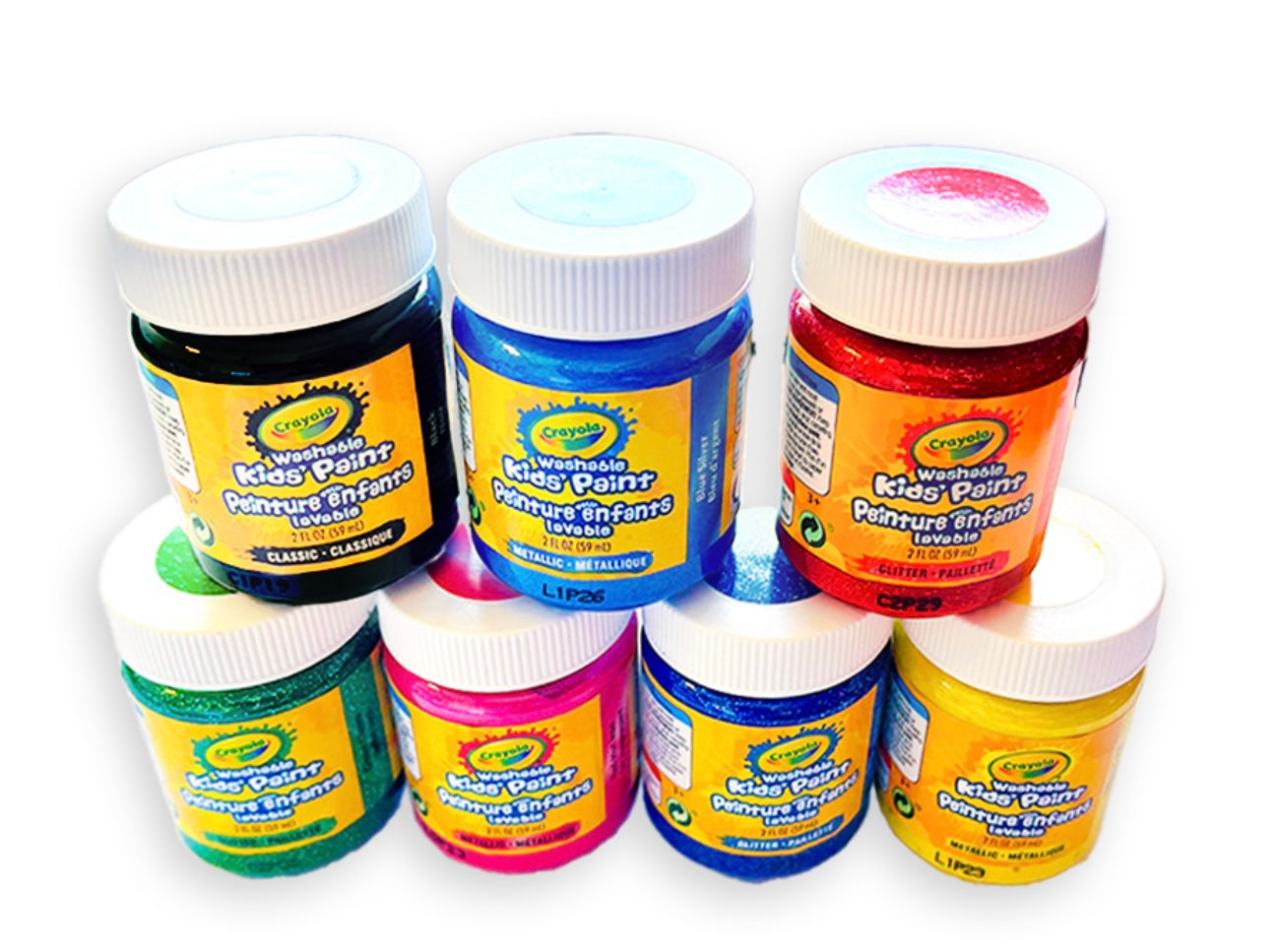 Incredible value on this super Crayola paint pot mix, Includes 7 metallic and glitter 59ml paint pots. Colours include red, yellow, black, pink, blue glitter, green and metallic blue. PLEASE NOTE – the black paint pot just contains black shiny paint. LIMITED STOCK AT THIS VERY LOW PRICE