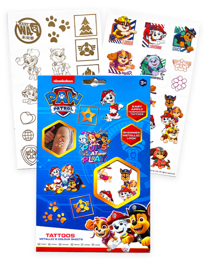 Fantastic value on this super pack of Paw Patrol themed fun tattoos. Instructions and warnings etc on reverse of pack.